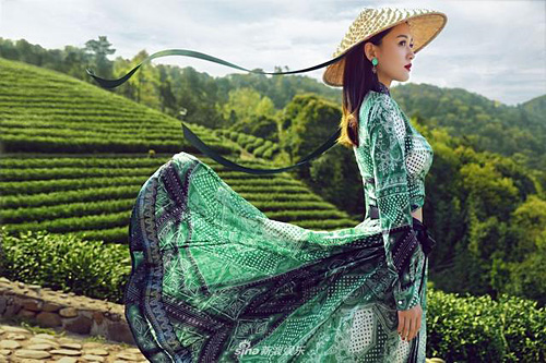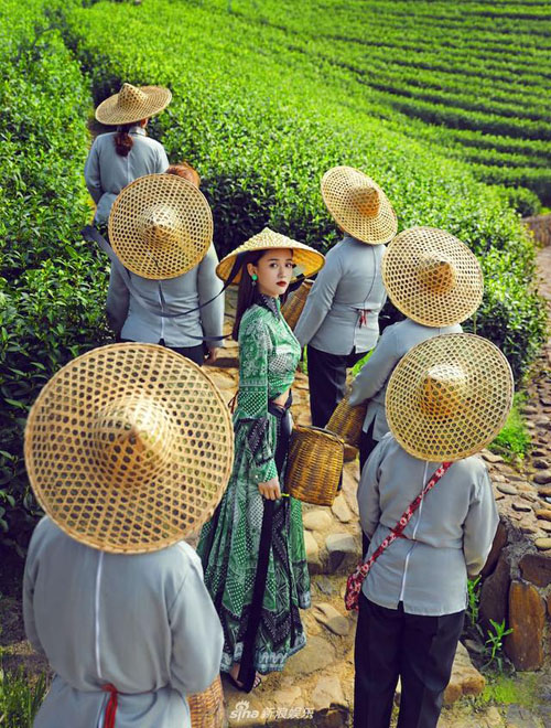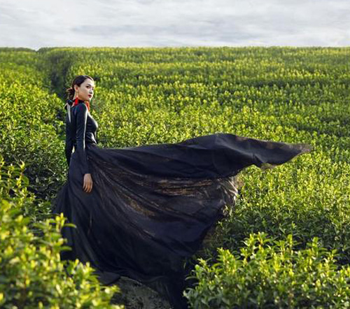 In a stunning new fashion spread, Joe Chen (陳喬恩) showcases tea culture, from tea picking, roasting, to tasting. The photos were photographed with lush tea fields in the backdrop, while contrasting with Joe’s bold outfits.