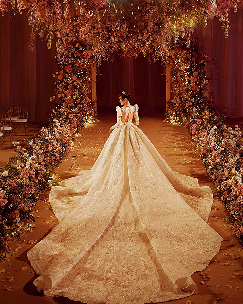 The pictures are so dreamy and romantic. The main wedding gown was a bit too over designed for me, but the other dresses were simply gorgeous. Congrats to them!