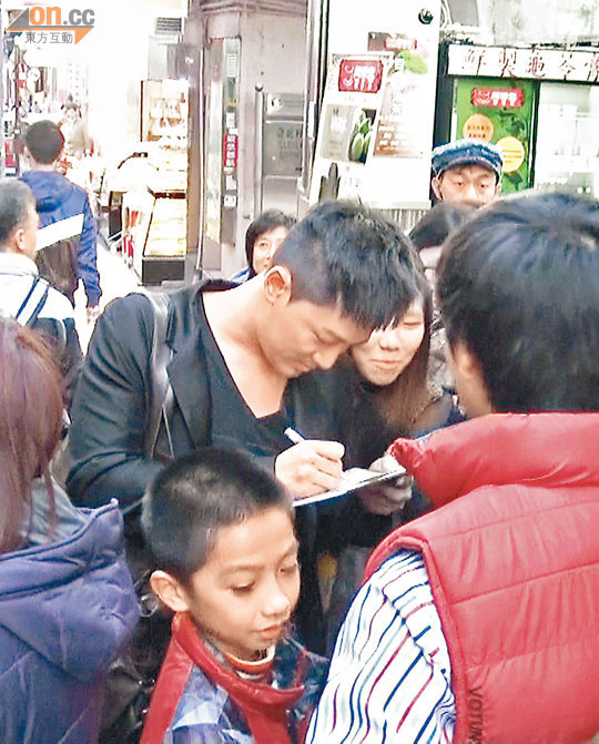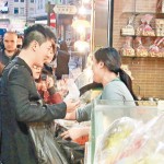 Raymond Lam (林峯), Kate Tsui (徐子珊), and Ella Koon (官恩娜) filmed in Sheung Wan for their new TVB drama, Fight Crime <雷霆掃毒>, yesterday. Raymond attracted a large crowd of fans requesting autographs and photos. A bakery proprietress smiled widely upon recognizing Raymond at her store. She offered to treat Raymond to free bread, but he refused, “No, business is still business.” Their disagreement over money went back and forth. Finally, Raymond succeeded in paying for his bread.