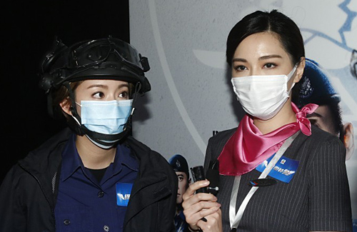 Recently, Roxanne, along with Sisley Choi (蔡思貝), Owen Cheung (張振朗), and Matt Yeung (揚明), attended a promotional event for the upcoming drama, Airport Strikers <機場特警>. Starring as a stewardess in the drama, Roxanne appeared at the event dressed in costume and seemed to have successfully maintained her slim figure.