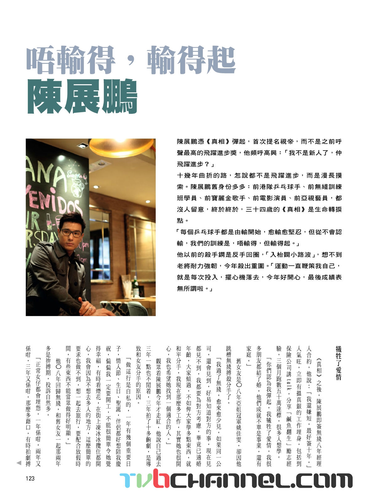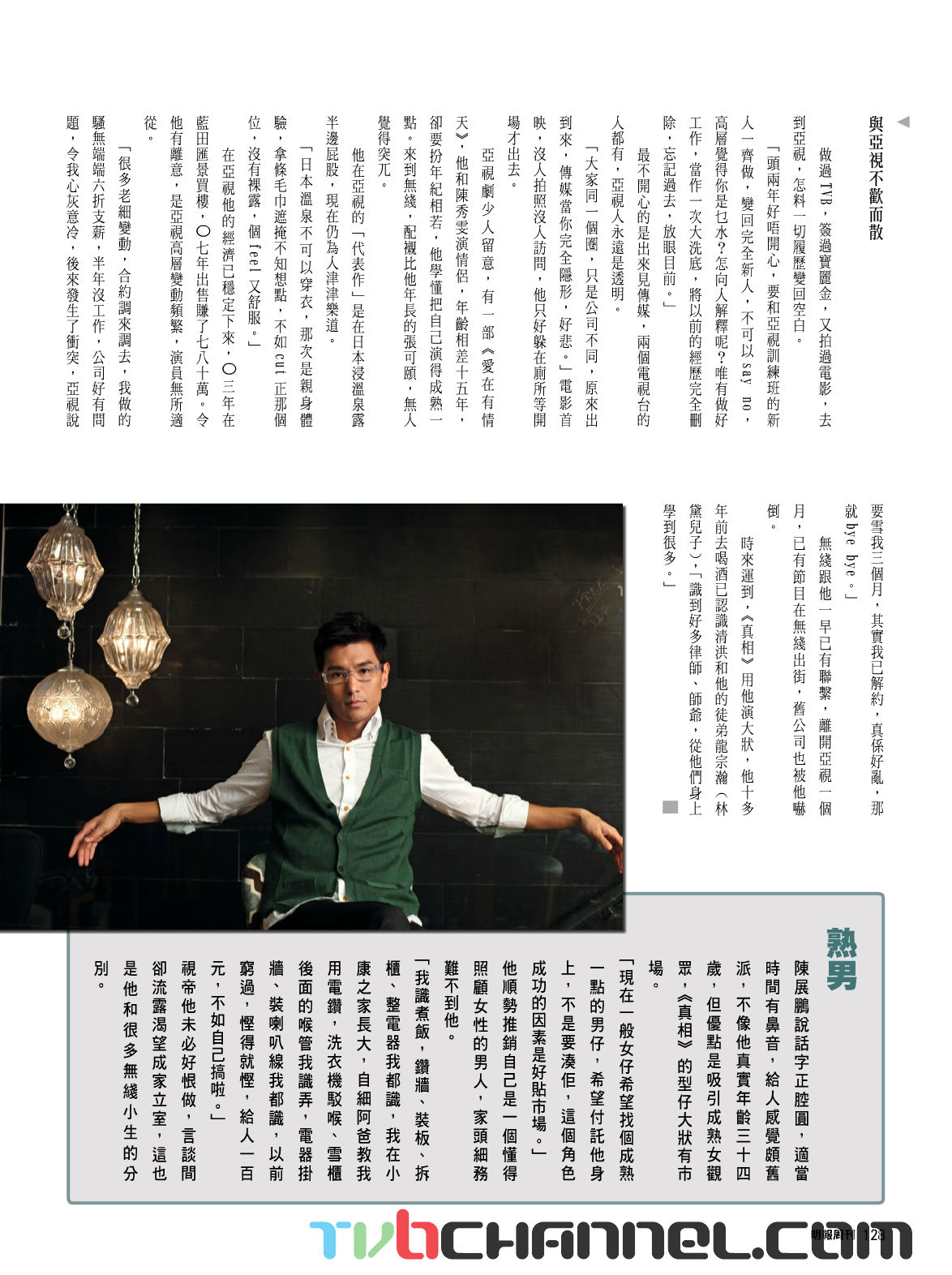 The interview was a little depressing to read, as it focused on many low points in his career and love life, including his lost relationship (inability to make ends meet for his first girlfriend who wanted to get married) and breakup with Eunis Yiu after his return to TVB.