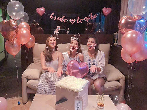 While not feeling especially nervous yet, Phoebe’s voice grew hoarse due to lack of rest. This week leading up to the big day has been especially busy for Phoebe, who did not expect friends, Tiffany Lau (劉穎鏇) and Joyce Ngai (魏韵芝), to throw her a surprise bachelorette party.