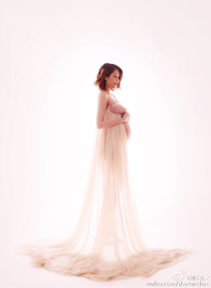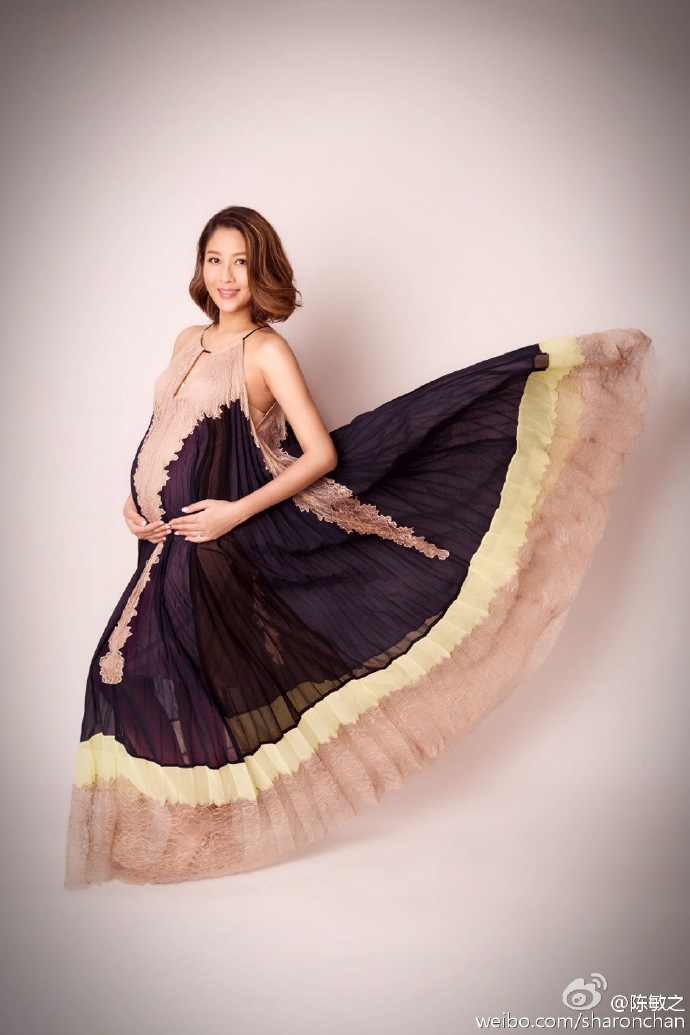Sharon Chan (陳敏之) is ready and prepared to welcome her baby! The 37-year-old actress, who is eight months pregnant, is savoring her last few weeks of pregnancy with a maternity photoshoot. The TVB actress shared the photos online on Sunday, drawing the likes of many fans and netizens.
