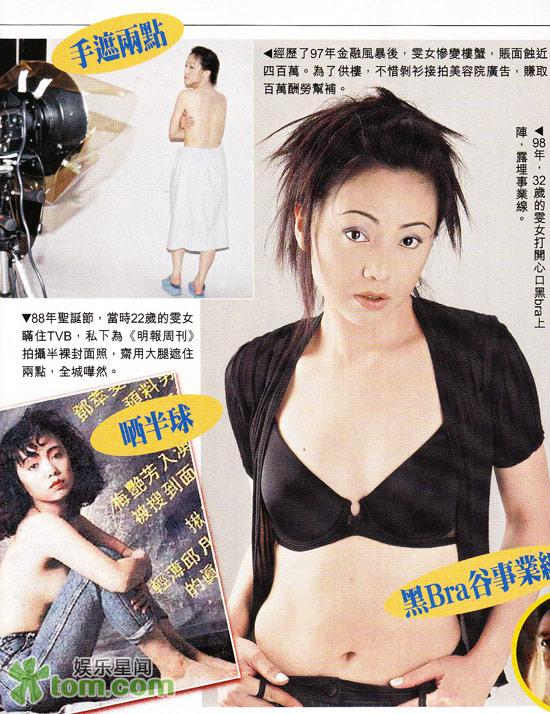 Sheren’s boldness can seen in her early career. In 1988, when she was only twenty-two years-old, Sheren posed in a topless cover photo for Ming Pao Magazine. The photo aroused heated discussion in Hong Kong at the time. In the photo, the side of Sheren’s breast was exposed. In Loving You II, Sheren had a bed scene with veteran actor, Chung King Fai. In a 2004 TVB movie with Michael Tong Man Lung, Sheren filmed an explicit love scene where she revealed her back.