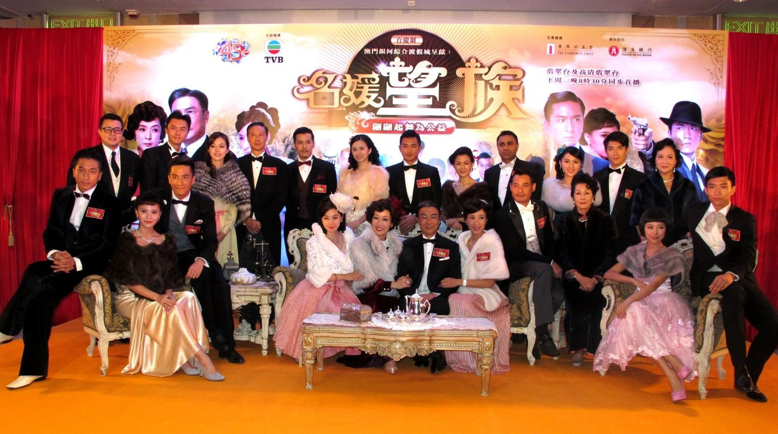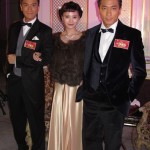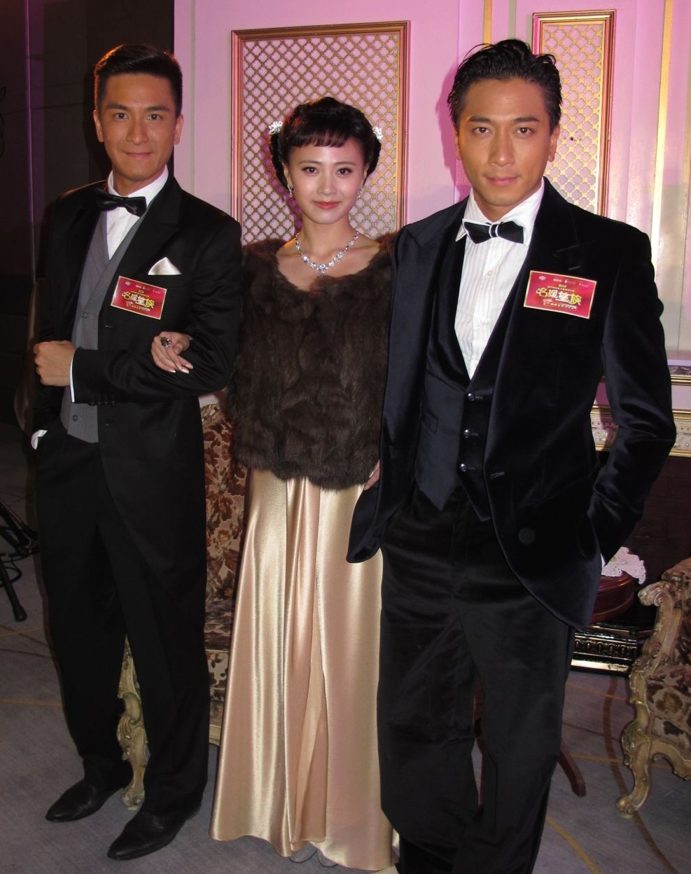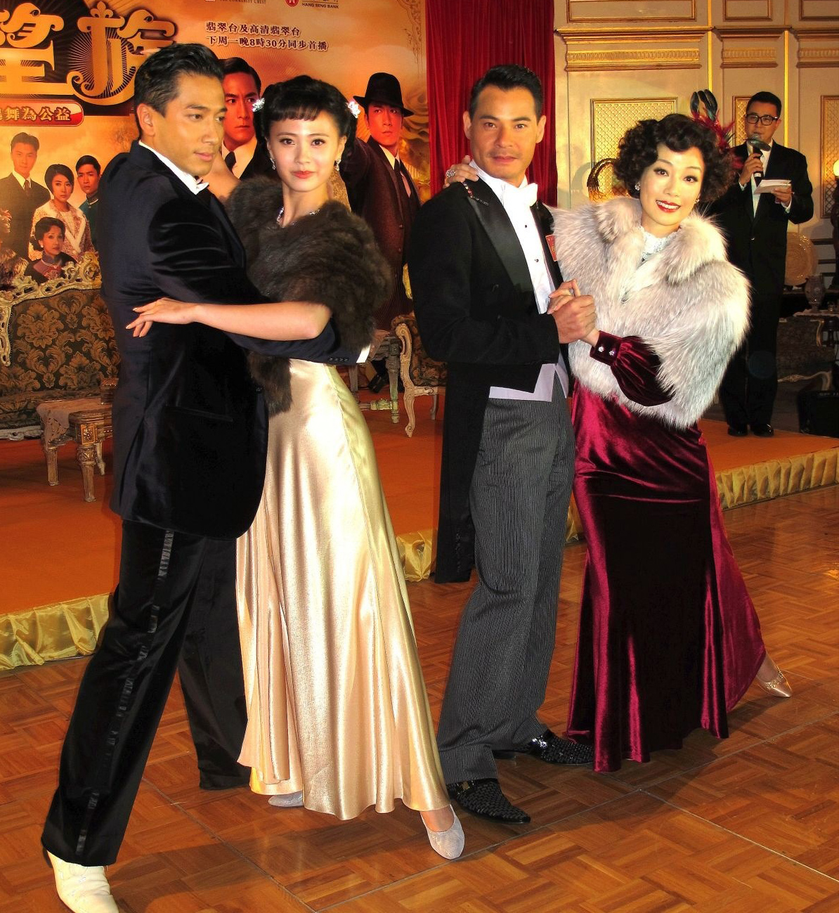 The cast of Silver Spoon, Sterling Shackles <名媛望族> attended a charity dance event last night. Tavia Yeung (楊怡) deflected recent controversy surrounding the coveted TV Queen race, while Damien Lau (劉松仁) celebrated his 63rd birthday and was kissed by his beautiful wives in the drama.