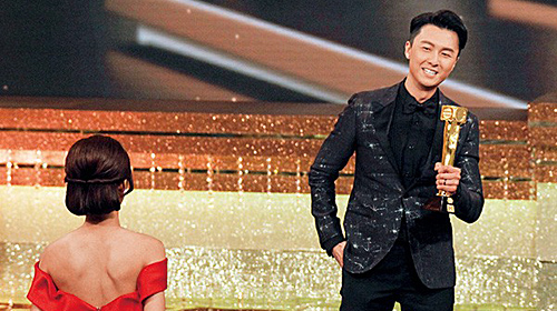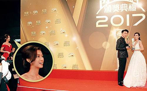 After the awards ceremony concluded, Vincent posed with Best Actress Natalie Tong (唐詩詠) for press photos. Sisley stood quietly by the sidelines while watching Vincent intently. Sisley smiled broadly and was still brimming with excitement over Vincent’s Best Actor win.