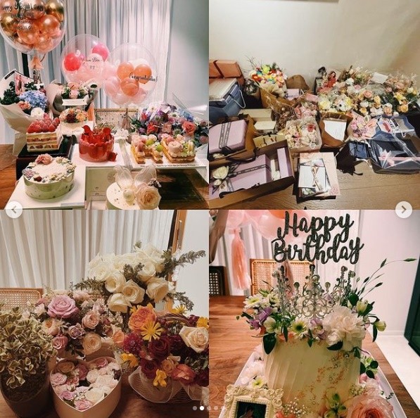 When the actress shared pictures of her presents, fans were stunned by the number of beautiful flowers and cakes that filled her room. Among the pictures, fans were excited to see a cake with a picture of Son Ye Jin’s iconic scene with Hyun Bin in Crash Landing on You, and the cake became a trending topic on Chinese social media.