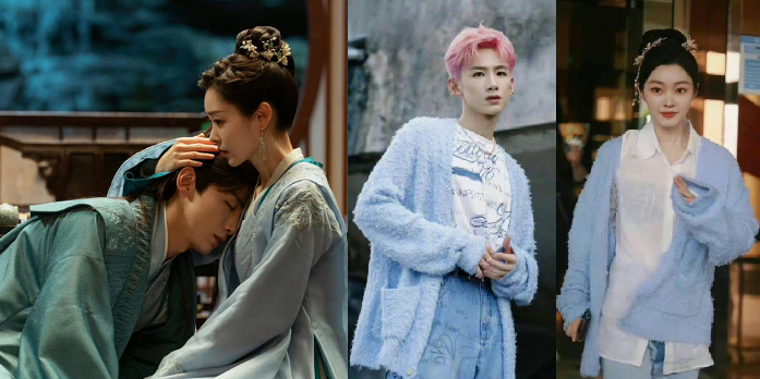 The two actors were discovered by sharp-eyed netizens to have stayed at the same hotel in Sanya, despite posting their photos taken at the island one month apart. On her June 24 livestream, Song Yi was seen in her onscreen costume plus an oversized black hodded jacket, which matches Bai Jingting’s. Astute fans and netizens then dug up more instances of the two donning matching couple wear, leading to exclamations that they were literally “sharing a wardrobe”!