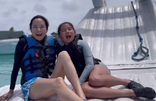 Sharing a video of her family of three vacationing in Maldives, Sonjia looks in great shape with porcelain skin despite stepping into her fifties, while her hubby Zhu Shaojie looks to put on weight in his middle age.