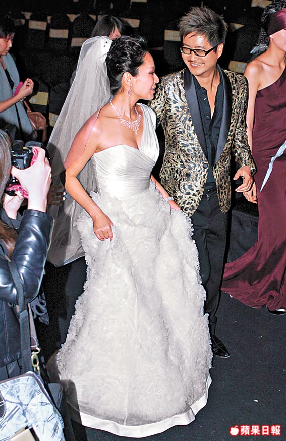 Sonija participated in good friend, Dorian Ho’s bridal fashion show yesterday. Her fiance, Zhu Xiaojie, attended the show as a guest and took numerous photos of Sonija, which he posted on his blog. Sonija wore a large diamond ring on her left hand.