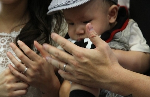 About an hour later, Steven met with reporters outside of the building to accept interviews. After a while, his wife and son joined him for family portraits. When talking to reporters, Steven promised to show his love for Man-man through action and provide a good environment for his son to grow up in.