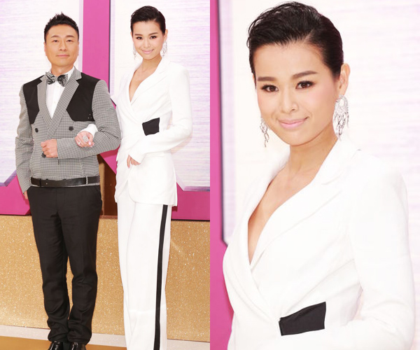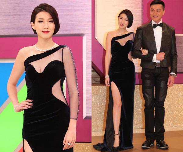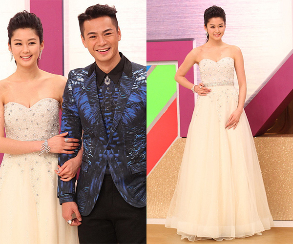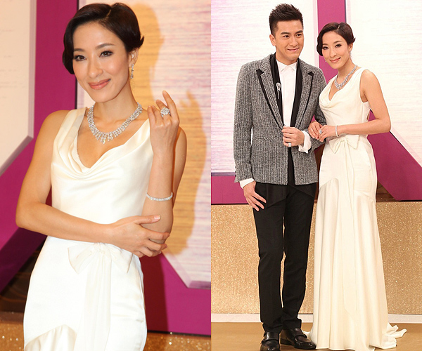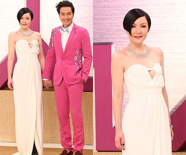 Tavia Yeung wore another white Viola Chan dress that serviced, but impressed less than her diamond jewelry. But she was well matched with Kenneth Ma, who looked handsome in his gray and black suit.