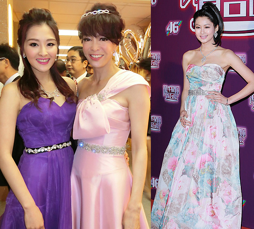 Carol Cheng (鄭裕玲) opted for a “pink princess” look this year, complete with a little tiara hair piece on her head. I would love to see her dress her age.