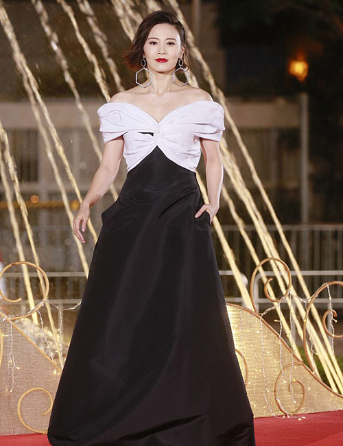 Especially dressing up since she was one of the presenters for the Best Actor award, Elaine Yiu shined in a shimmering gown with romantic sheer sleeves. Although this look has been seen at a lot of red carpet events, Elaine still looked dazzling.