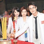 Tavia Yang (楊怡), Kenneth Ma (馬國明), Him Law (羅仲謙), Mandy Wong (黃智雯), and Miss Chinese International 2010 Second Runner-up, Candy Chang (張慧雯), appeared at the praying ceremony for TVB series, On Call 36 Hours <On Call 36小時>. Since Him Law filmed numerous series for TVB, reporters asked whether he will sign a management contract to become the company’s “biological son.” Him said, “No, I still have a very long contract with Filmko. I am grateful grateful to TVB for giving me opportunities.” Him revealed plans to reduce “flesh exposure” due to concerns that his image may remain stagnant.