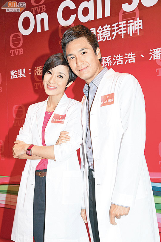 On Call 36 Hours will feature an older-woman, younger-man relationship between Tavia Yeung and Him Law. Although the pair will share numerous scenes together, Tavia described herself as being “insulated” [from romantic rumors]. Tavia said, “I do not think it will happen. Even if I fall into his hands, I do not mind since Him is so handsome!”