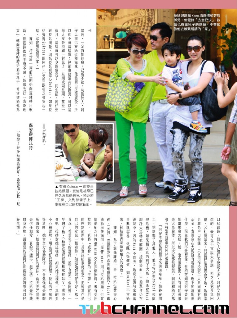 According to Ming Pao, Cecilia had Lucas with her while she was filming in Shenzhen, removing him from school. Quintus was in Hong Kong taken care of by her maid. Earlier, the Sun reported that Deborah Dik did not know the location of her grandsons. All this happened amidst divorce threats and suicide threats. Meanwhile, Cecilia did not take into consideration the best care of her two young sons in this critical stage when Nic was still deciding on the divorce issue. I think Cecilia sealed her own fate with her rash behavior.