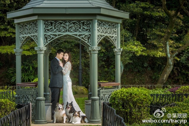 Tracy said, “It was very humid on the day of the photoshoot. My fiancé and I were sweating heavily. But even so, we still had a lot of fun at the photoshoot. The happiest thing for me is to get the chance to get my three dogs in the photos. They are so well-behaved.”