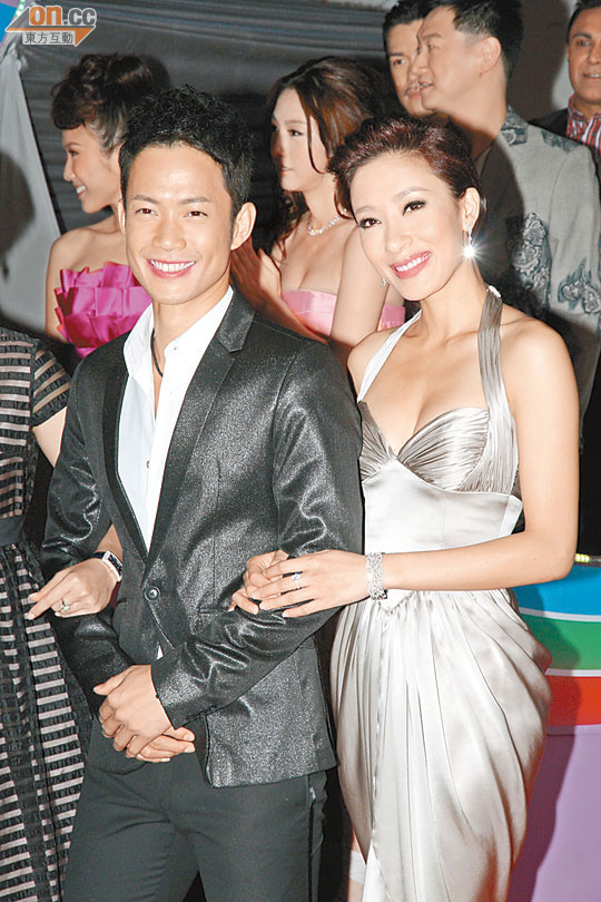 Fala Chen wore a champagne-colored evening dress, noting that she will reserve more sexy attire for the upcoming TVB Anniversary celebrations. “I will dress more boldly at the Anniversary and Awards Ceremony!” Another fadan, Tavia Yeung (楊怡), wore $73 million HKD in jewelry, which was sponsored by Emperor Watch & Jewellry. Revealing her “career line,” Tavia laughed and said that she hoped that she will achieve greater heights in her career.