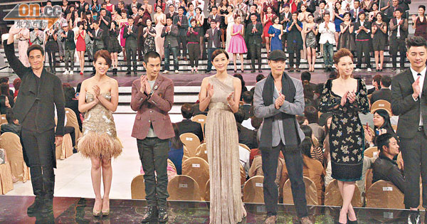 Francis Ng (吳鎮宇) indicated that he will not portray a pilot in the upcoming Triumph In The Skies 2 <衝上雲霄 II>. Charmaine Sheh (佘詩曼) revealed her naked back in 4 in Love. While singing praised for TVB, Moses Chan and Bosco Wong’s (黃宗澤) words were jumbled, causing Carol Cheng (鄭裕玲) to tease them by saying that a good master of ceremonies was difficult to find. During the photo-taking session, TVB arranged ten fadans and ten siu sangs to stand in the first row to involve the advertisers.
