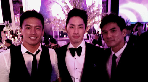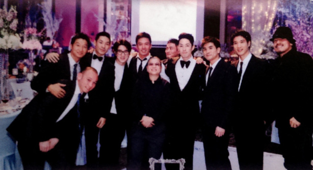 While they chose a low-key approach for their American wedding, Vanness and Arissa hosted a truly star-studded party in Singapore this weekend. Jerry Yan (言承旭) made up for his absence this time around, and close friends Jaycee Chan (房祖名), Andy On (安志杰), and Philip Ng (伍允龍) also showed up to give their blessings.
