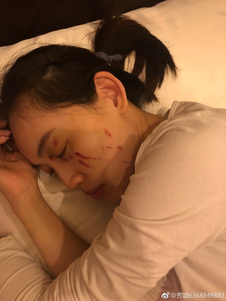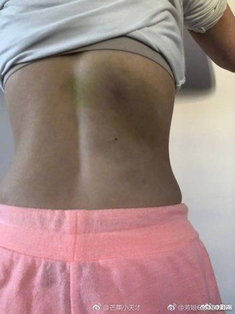 In the photos Fang Jie shared, Ma is covered with bruises all over her body, including the face and back.