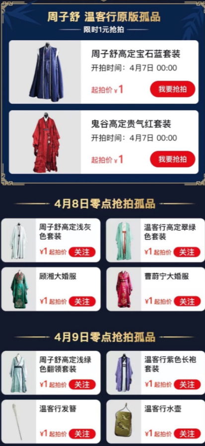 Capitalizing on Word of Honor’s popularity, the production crew held a pop-up exhibition featuring the drama’s main costumes and props for a limited time. On April 7, an online auction started and key items from the drama were sold.