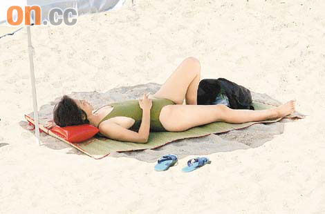 Yammie and her friend, Yeung Man Lei, rented a beach umbrella and found a good spot on the beach. Yammie quickly changed into a bathing suit and laid on the sand soaking the sun.