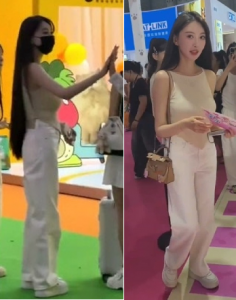 As for Ye Ke, she left her baby at home and was spotted attending a pet exhibition. With her long hair cascading past her waist, wearing a sleeveless top with trousers, she appeared slender and had impressively regained her figure not long after giving birth. Guided around the booths by staff, she strolled casually looking at cats, and when she noticed netizens filming her, she showed no resistance.