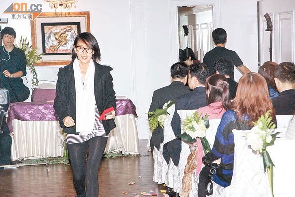 As a guest at Yoyo Chen and Vincent Wong’s wedding ceremony, Tracy Ip (葉翠翠) indicated that she was moved to tears. Asked whether she was eager to get married, Tracy admitted, “I always wanted to get married! Yoyo is my best friend in the entertainment industry; I give them my blessings.” (When will it be your turn to get married?) “It will be a long time! Mr. Right has not appeared yet! I will have to wait and see the quality of the groomsmen on November 13th, the day of the wedding banquet!”