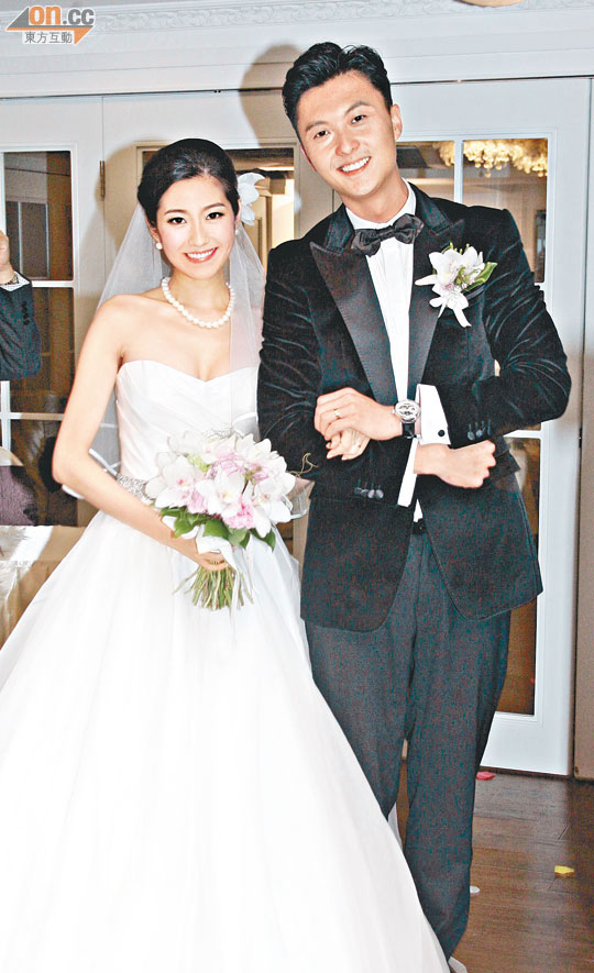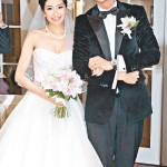 Yoyo wore a simple wedding dress, accompanied by pearl jewelry yesterday. Pushing up her cleavage, Yoyo smiled, “The dress is not very sexy, but the fit is very tight. the wedding good fit.” Asked whether the scene was very moving, Yoyo replied, “I was not very nervous all along. When I entered into the hall and saw the people who meant the most to me in my life, including all my friends, I started crying.”