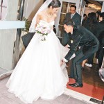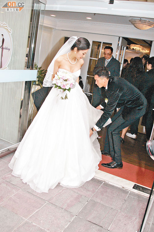 At the wedding ceremony yesterday, Yoyo’s chest appeared fuller than before; her figure was excellent. Throughout the entire ceremony, Yoyo used her bridal bouquet to block her belly area. Vincent clutched her waist tenderly and knelt down with care to rearrange the train of her gown frequently, afraid that Yoyo would trip and fall. Reporters asked directly whether Yoyo was pregnant. Vincent only admitted that he wished to have a “dragon son” in 2012, which will be a year of the dragon sign.