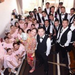 EEG singer, Yumiko Cheng (鄭希怡) and make-up artist Andy Leung (梁學儲) held their wedding banquet at the Harbour Grand Kowloon Hotel. The couple got married in Ko Samui, Thailand in November 2013 and held a larger traditional Chinese banquet today to include more guests. Surrounded by their good friends, Yumiko and Andy had a memorable celebration filled with outrageous games.