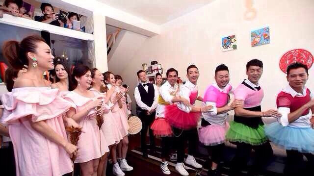 Gillian revealed that the groom gave the bridesmaids a lucky packet of $19,999 HKD during the bridal games. Andy and the groomsmen–which included Edmond Leung (梁漢文), Wilfred Lau (劉浩龍), and Sam Lee (李璨琛)–wore bras, ballerina dresses, stockings over their heads, and even ate “poop-filled” diapers.