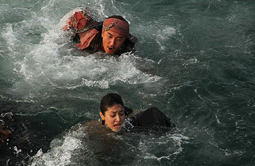Grace Chan and Tony Hung film a water scene for time-traveling drama, "Pirate Cheung", in which they plunged into the sea together.