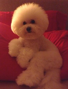 Elena is in love with her dog, Teddy, and even set up a Weibo blog with all his cute photos on there. The above photo is after Teddy’s haircut; looks like he was posing and showing off his legs.
