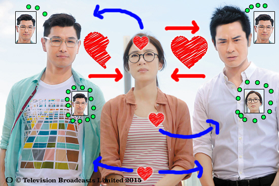 See big half love and big full love and arrows? Tavia loves Kevin who also loves Tavia. But Ruco loves Tavia and Tavia doesn’t reciprocate.